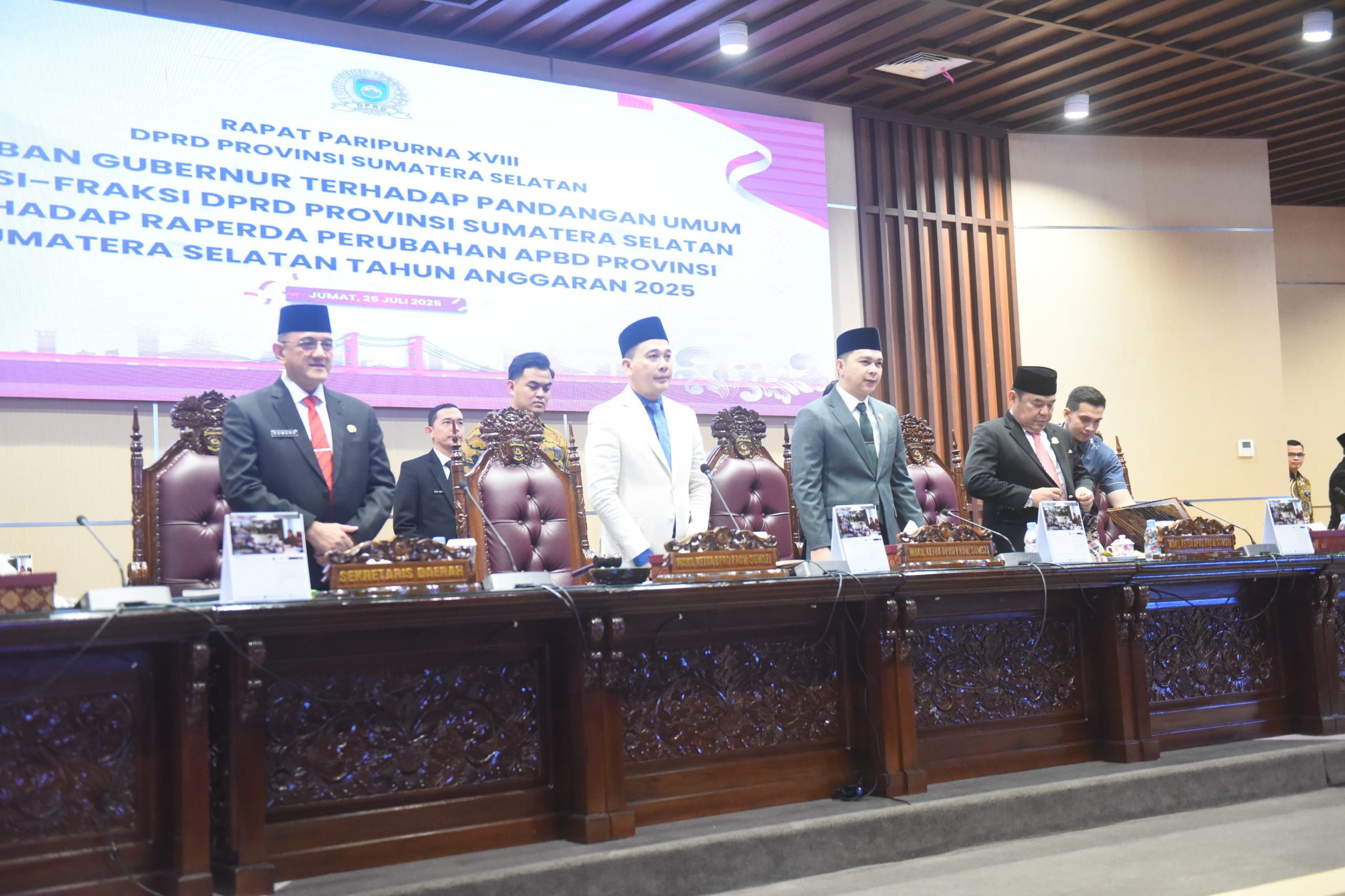 Sekretaris Daerah (Sekda) Sumsel, Drs H Edward Candra MH, mewakili Gubernur Dr. H. Herman Deru, menyampaikan jawaban atas pandangan umum fraksi-fraksi DPRD terhadap Rancangan Peraturan Daerah (Raperda) Perubahan APBD Tahun Anggaran 2025.