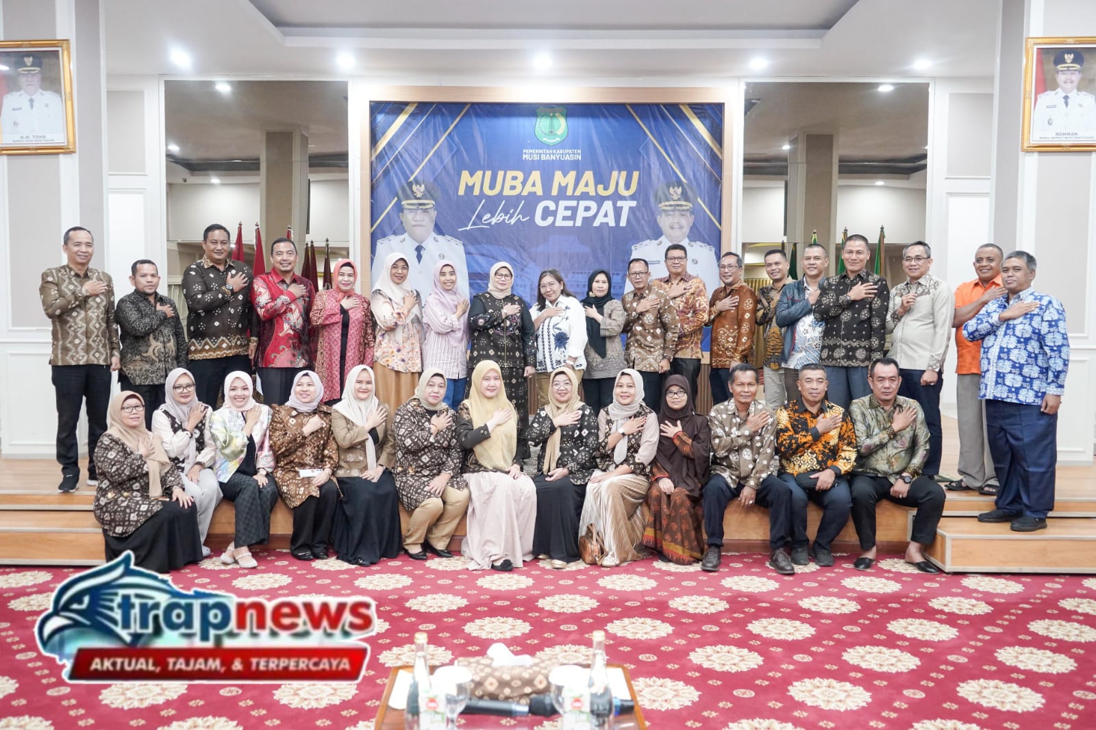 upzmerdeka,MUBA – Ketua Tim Penggerak PKK Kabupaten Musi Banyuasin (Muba) sekaligus Ketua Forum Kabupaten Kota Sehat Muba, Hj Patimah Toha, menyambut kedatangan Tim Penilai Kabupaten/Kota Sehat (KKS) Pusat di Pendopoan Griya Bumi Serasan Sekate, Selasa (16/9/2025) malam.